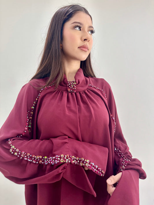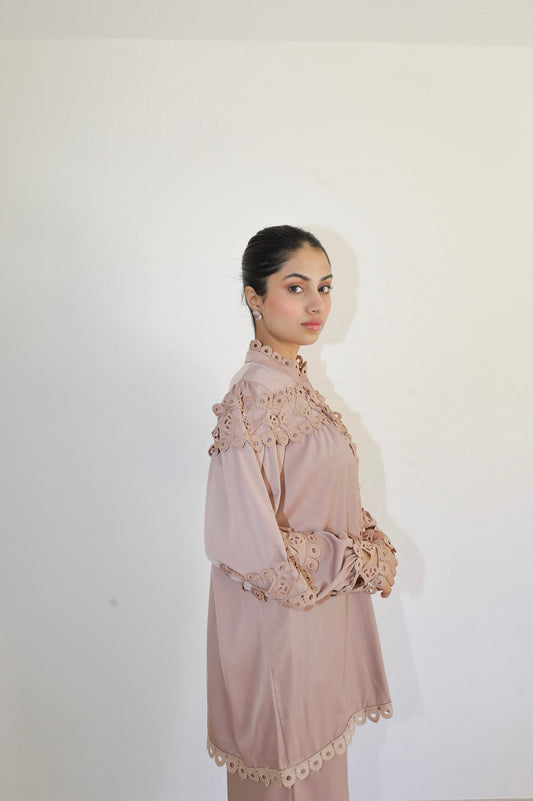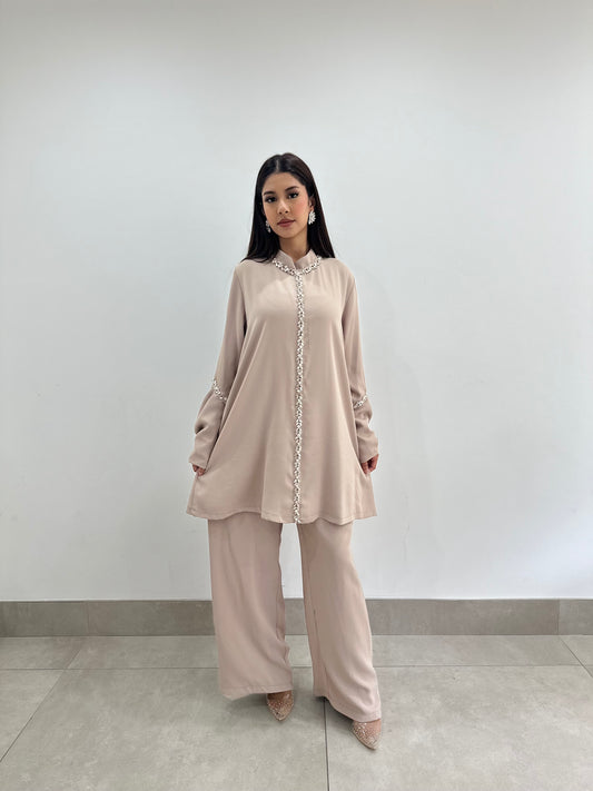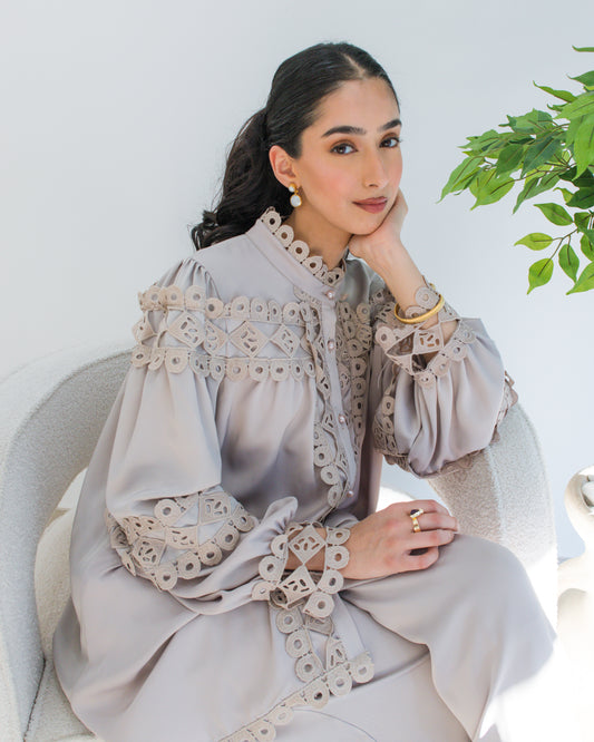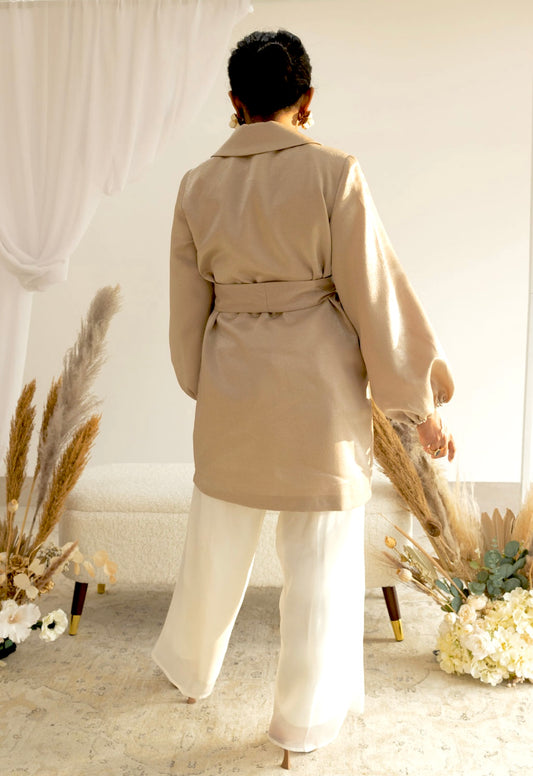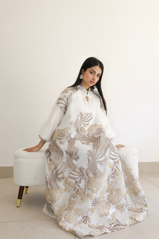 Cream Mosaic kimono with Multicolour Detailing and Tassel Trim