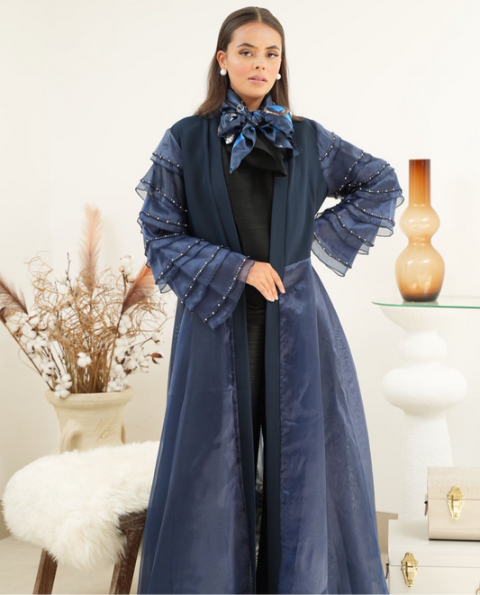 Sold outRuffles Midnight Blue Organza Abaya